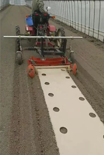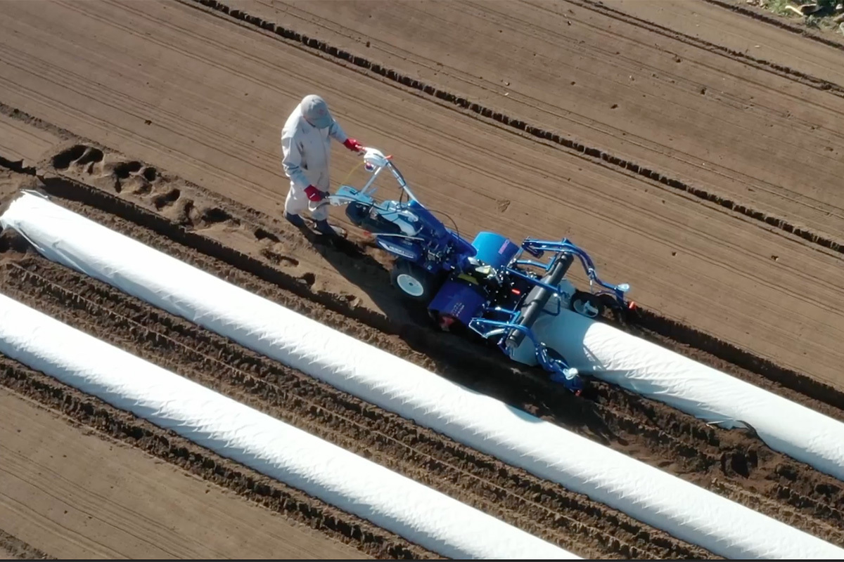 - マルチャーで展張する際、フィルムマルチのように伸びないので、テンションがかからない様にマルチャーを調整